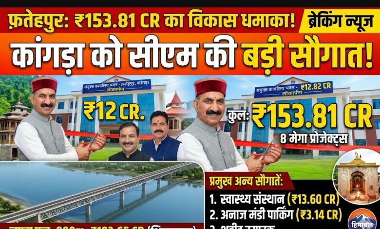 कांगड़ा/फतेहपुर: हिमाचल प्रदेश के मुख्यमंत्री ठाकुर सुखविंदर सिंह सुक्खू ने मंगलवार को कांगड़ा जिले के फतेहपुर विधानसभा क्षेत्र के लिए विकास का पिटारा खोल दिया। अपने तूफानी दौरे के दौरान मुख्यमंत्री ने 153.81 करोड़ रुपये की कुल 8 विकासात्मक परियोजनाओं के लोकार्पण और शिलान्यास किए। इन परियोजनाओं से न केवल फतेहपुर बल्कि आसपास के क्षेत्रों की तस्वीर भी बदलेगी।