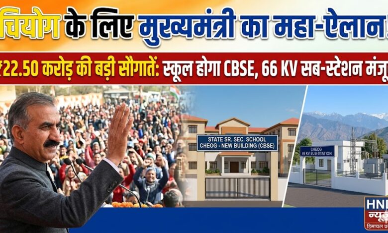 • शिक्षा: राजकीय वरिष्ठ माध्यमिक स्कूल, चियोग के नए भवन के लिए 5.50 करोड़ रुपये स्वीकृत किए। साथ ही, अगले सत्र से इस स्कूल को सीबीएसई (CBSE) पाठ्यक्रम से जोड़ने का ऐलान किया।