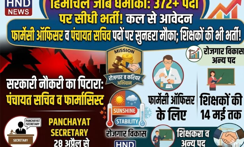 शिमला | हिमाचल प्रदेश के बेरोजगार युवाओं के लिए रोजगार के नए द्वार खुल गए हैं। हिमाचल प्रदेश राज्य चयन आयोग (HPRCA) और स्वास्थ्य से लेकर शिक्षा विभाग तक कई महत्वपूर्ण पदों पर भर्ती प्रक्रिया शुरू हो चुकी है। यदि आप भी सरकारी नौकरी की तलाश में हैं, तो इन अवसरों का लाभ उठा सकते हैं।